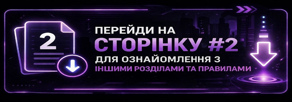 Реклама будь-яких інших серверів, сторонніх сервісів, сайтів, що не належать до цього сервера - заборонена!